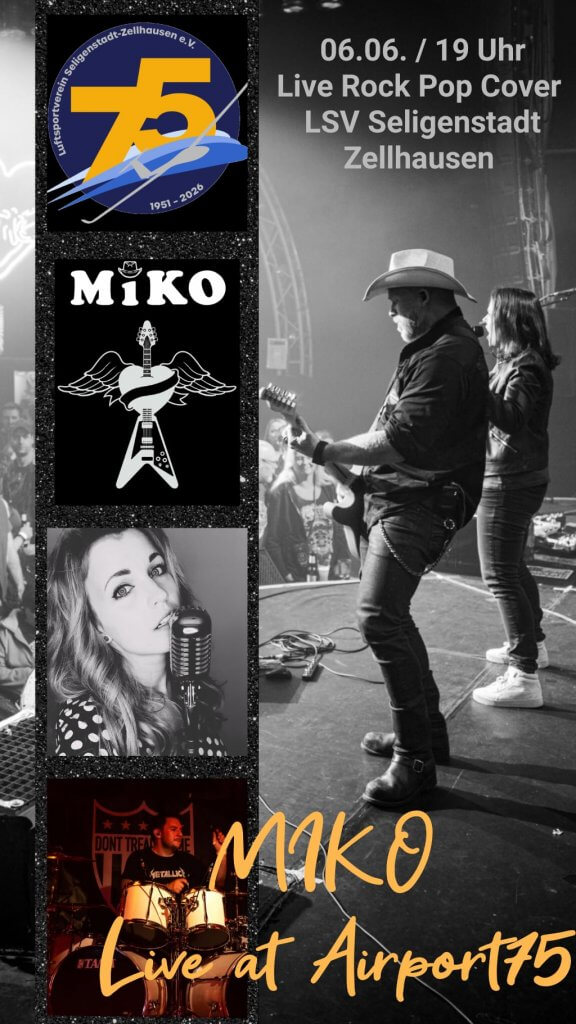 Mit inzwischen über 30 Auftritten pro Jahr haben sich MIKO ROCK eine bemerkenswerte Live-Präsenz aufgebaut. Dabei reicht die Bandbreite von Geburtstagen und Firmenfeiern über Stadtfeste und Kirmes bis hin zu Clubs und Kneipen – ein Mix, der ihre Vielseitigkeit unterstreicht und für immer neue Begegnungen sorgt. Für die Band ist diese Vielfalt keine Selbstverständlichkeit, sondern ein Grund zur Dankbarkeit: jede Bühne, jeder Abend und jedes Publikum schreibt die Erfolgsgeschichte von MIKO ROCK ein Stück weiter.